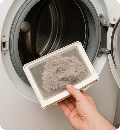 Lint and soap residue can clog filters and vents—especially since washer-dryers handle both washing and drying in one unit. -